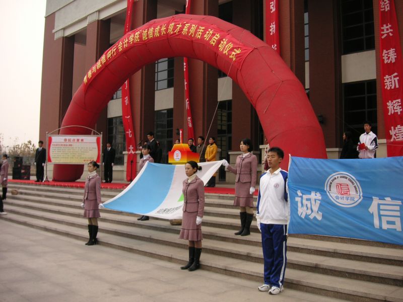 11月29日下午,永利yl23411集团“青春与诚信同行”系列教育活动启动仪式在明水校区篮球场举行, 校党委副书记牟思伦、省财政厅会计处刘焕平副处长、永利yl23411集团师生及明水校区有关负责人参加启动仪式。