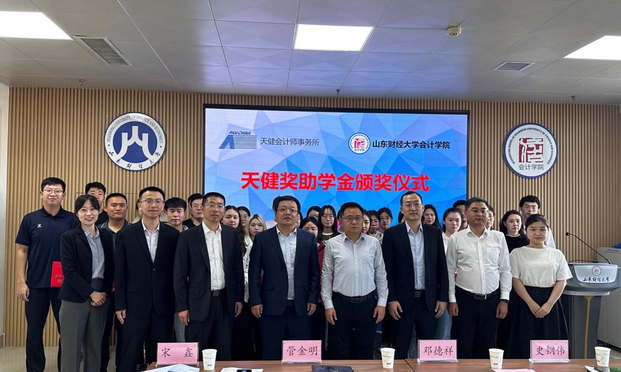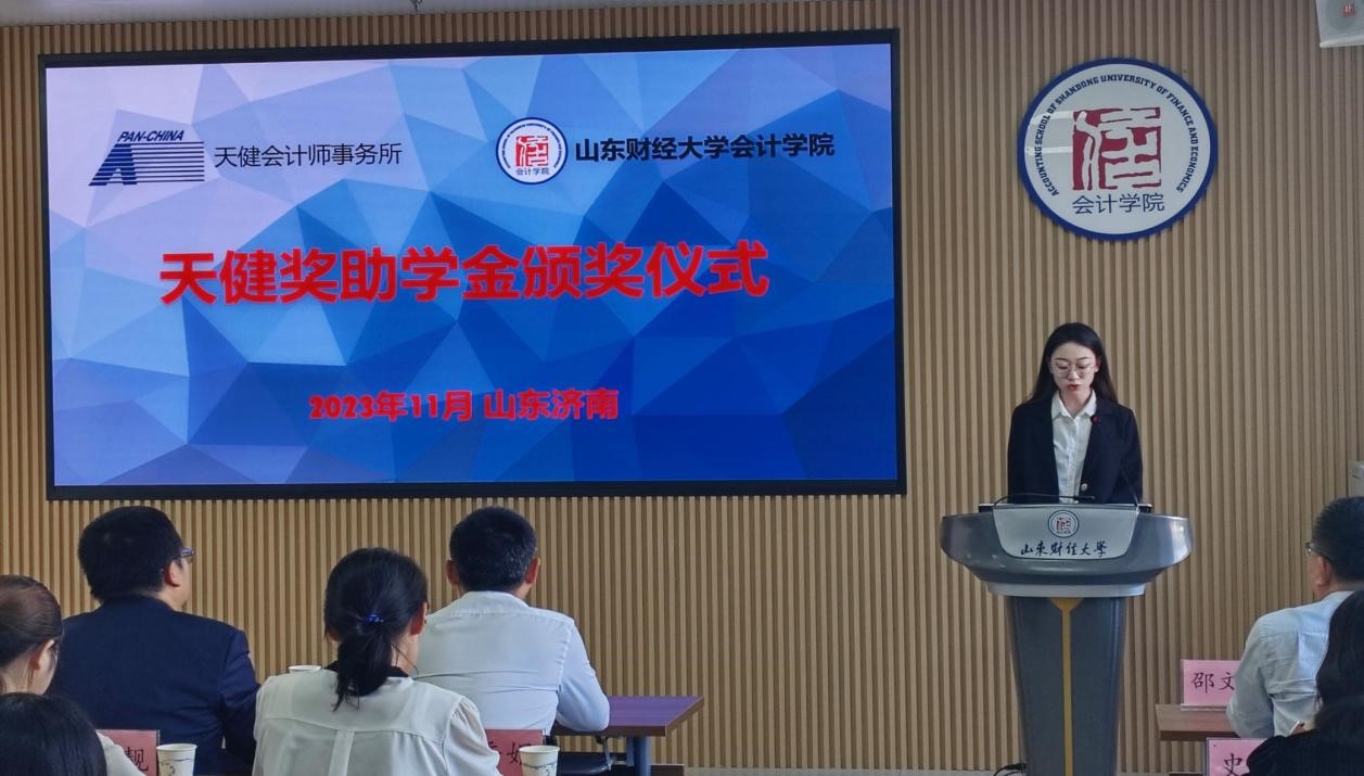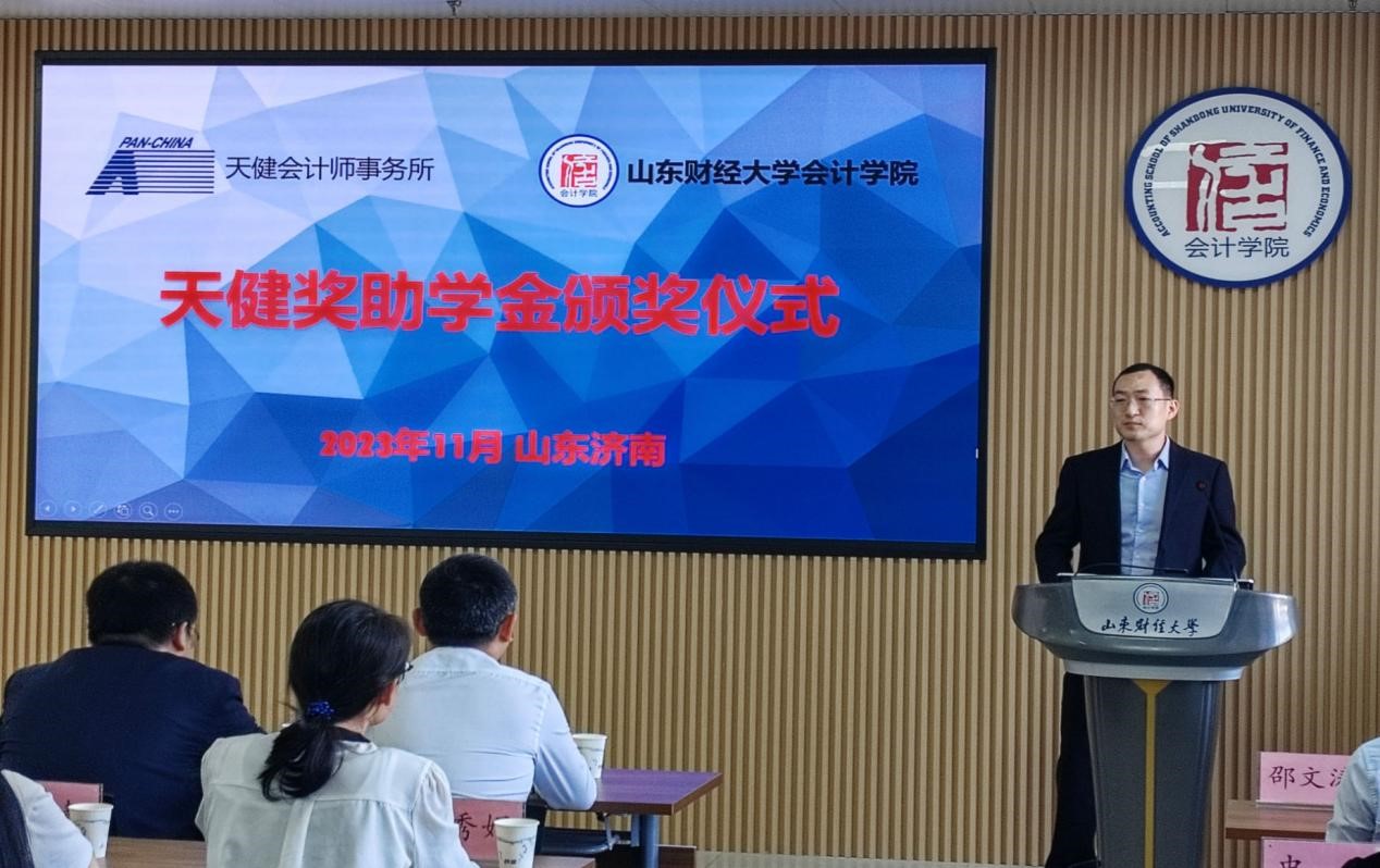 11月1日下午,2023年度天健就业奖助学金颁奖仪式在yl23411永利燕山校区逸夫楼举行。天健会计师事务所高级合伙人、山东分所副总经理管金明,高级合伙人、主任会计师助理邓德祥,合伙人宋鑫,合伙人、山东分所总经理助理史钢伟,人力资源总部高级经理韩杰,人力资源总部助理经理林小靓,山东分所人力资源部经理宋小燕,永利yl23411集团党委书记邵文涛以及教师代表、学生代表参加,仪式由辅导员史岩主持。