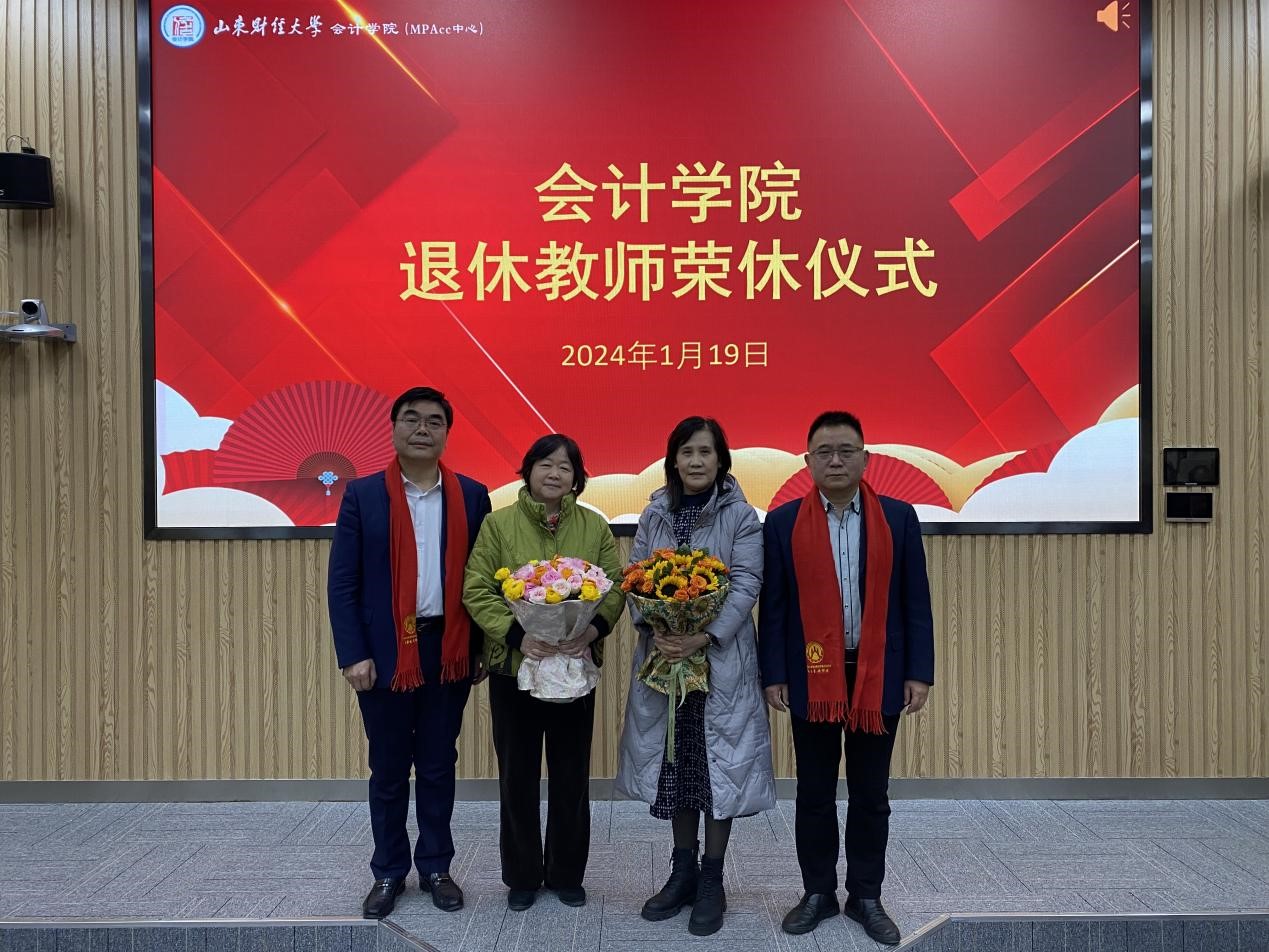 学院为王乐锦、王茂春老师举行了荣休仪式。两位教授先后发表荣休感言。她们对学院为退休教职工举行荣休仪式和学院数十年来的关怀表示感谢,并深情回顾了在永利yl23411集团工作的经历,为能在永利yl23411集团为师生做出的服务而感到欣慰。邵文涛表示两位教授立德树人,潜心耕耘,服务师生,桃李天下。其精益求精的服务态度、严谨求真的治学品质是我们学习的榜样。希望荣休老师能继续关心关注学院发展,时时支持青年教师的成长。