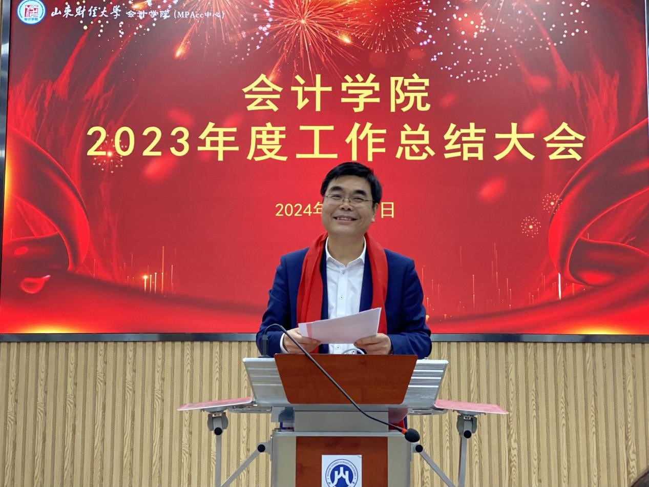 葛永波首先对2023年度学院总体工作情况进行了总结。他表示学院进入一个稳定发展的阶段,学院在教学科研条件、人文环境、科研氛围等多个方面均在不断改善。但是学院还存在高水平科研成果严重不足、高端青年人才短缺等问题。他强调,下一步学院将继续完善优化人才评价体系,营造良好学术生态,释放创新活力,激发干事创业氛围,使学院上一个新的台阶。