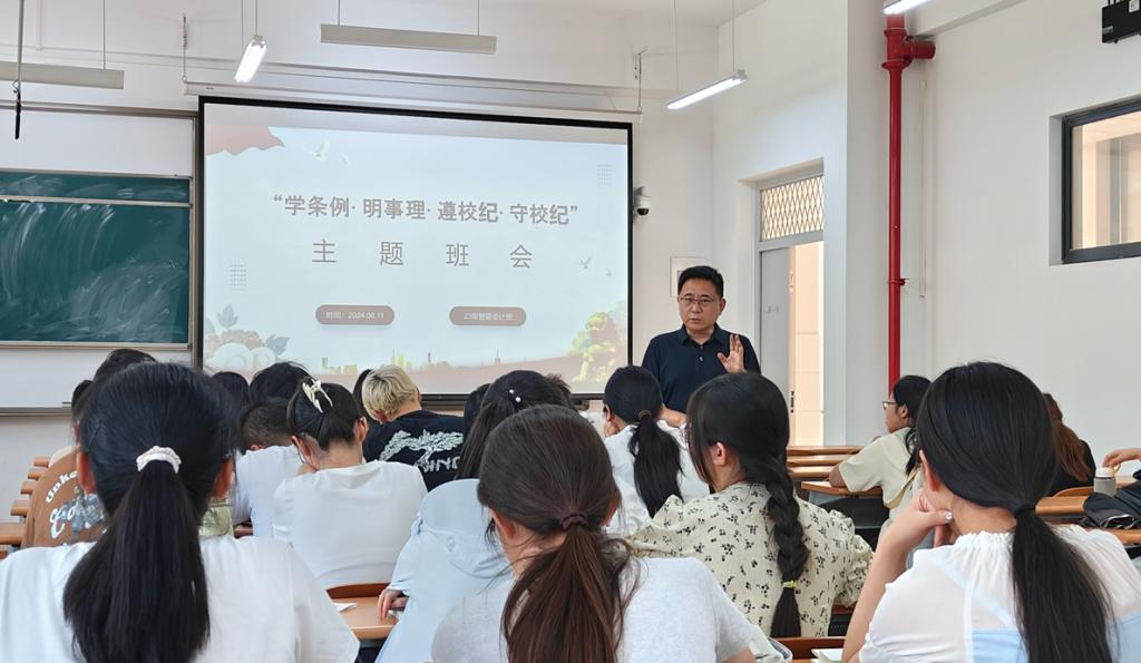 2024年6月11日,永利yl23411集团党委书记邵文涛在23级智能会计班,召开“学条例·明事理·遵校规·守校纪”主题教育班会。