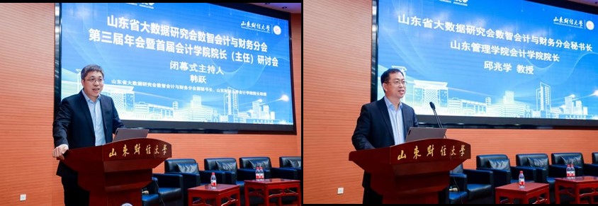 最后,大会顺利进入闭幕式,山东省大数据研究会数智会计与财务分会副秘书长、永利yl23411集团院长助理韩跃主持闭幕式,山东省大数据研究会数智会计与财务分会秘书长、山东管理学院永利yl23411集团院长邱兆学教授进行了会议总结。