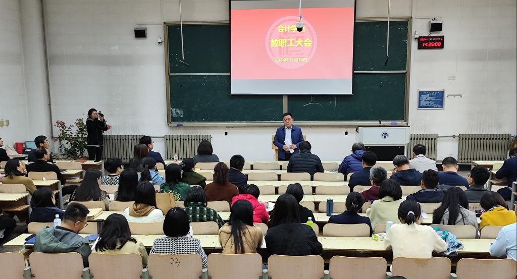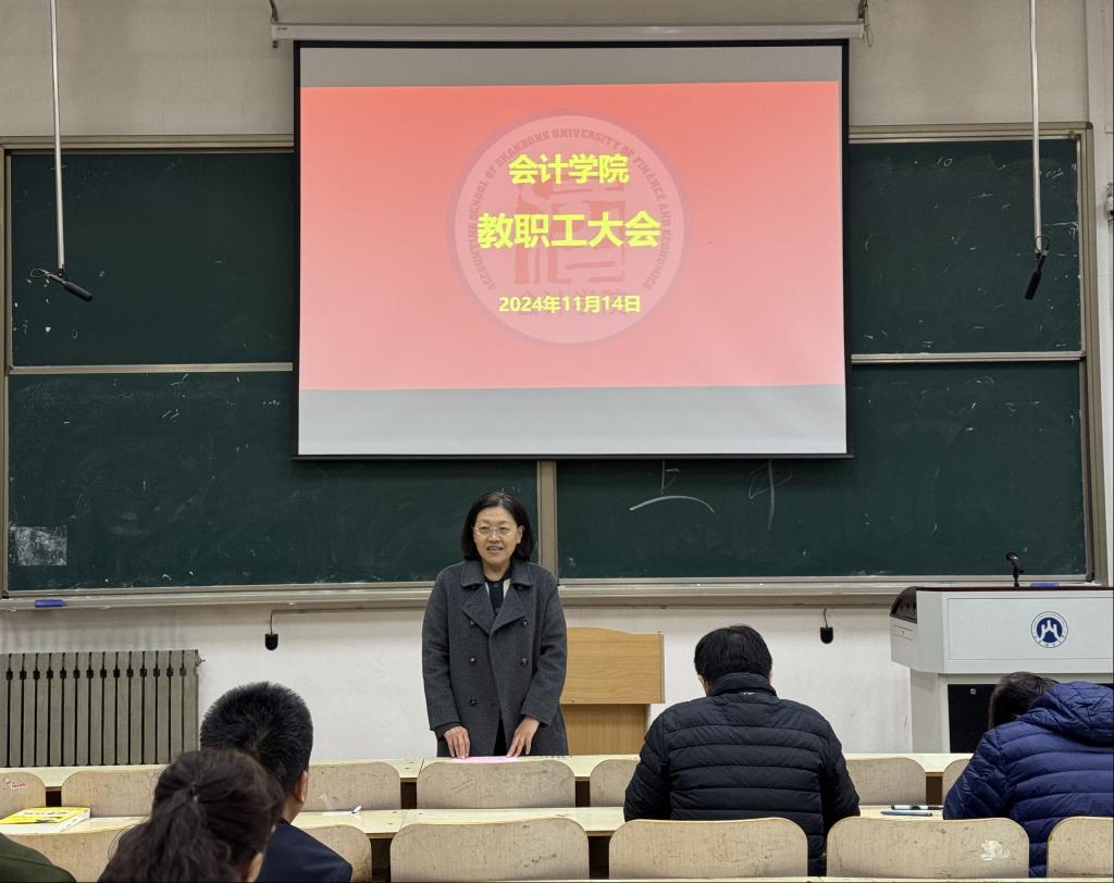 张红霞与全体教职工进行了深度交流,她肯定了永利yl23411集团的辉煌成绩及全体教职工的辛勤付出,并对永利yl23411集团的发展提出要求,她首先强调了师德师风建设的重要性,指出要进一步强化政治理论学习,提升政治素养和业务能力。其次,在教研科研方面,张红霞向全体教职工分享了自身教学心得与经验,指出要大力弘扬教育家精神,加强教研科研建设,传承并发扬“红色会计”,发展智能会计。最后,张红霞呼吁全体教职工再接再厉,为学校建成全国一流财经特色名校共同努力。