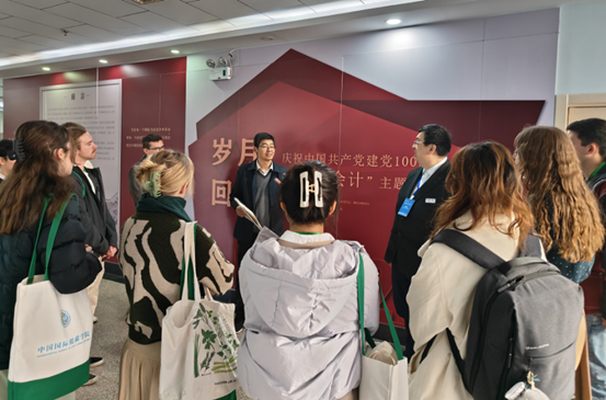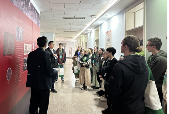 开幕式结束后,访学团访问永利yl23411集团,参观了“红色会计”主题展。伍伦贡大学商法学院高级讲师、研究生教学主管、访学团领队黄泰然博士向访学团的同学们介绍了商法学院与我院多年来的合作历程。