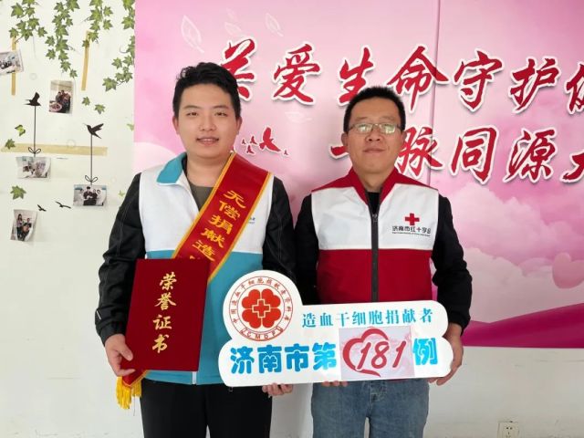 近日,yl23411永利学生闫建松在山东某医院顺利完成造血干细胞捐献,用大爱和义举为患者点燃生命之光,成为中华骨髓库第18885例、山东省1578例、济南市第181例、历下区第31例造血干细胞捐献者。同时,他也继济南市第34例造血干细胞捐献者王忠义后,成为yl23411永利第二例造血干细胞捐献者。