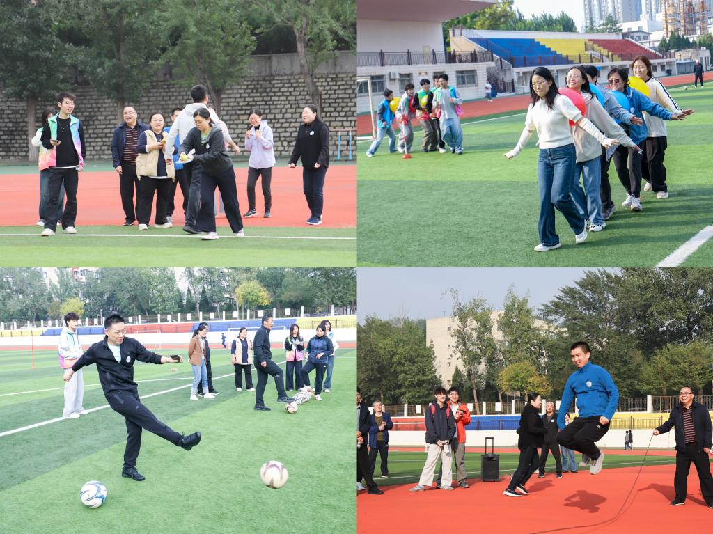 随着发令哨声清脆响起,活动正式拉开序幕。本次趣味运动会精心设计了多项融合趣味性、协作性与竞争性的特色项目,操场上瞬间化作欢乐的海洋。平日里伏案耕耘的老师们纷纷走出讲台、跃入赛场。大家或默契配合、携手共进,或你追我赶、奋力拼搏,或相互鼓励、呐喊助威。场边加油声、欢呼声与喝彩声交织回荡,将现场氛围一次次推向高潮,每一张笑脸都洋溢着运动的活力与团队的温情。