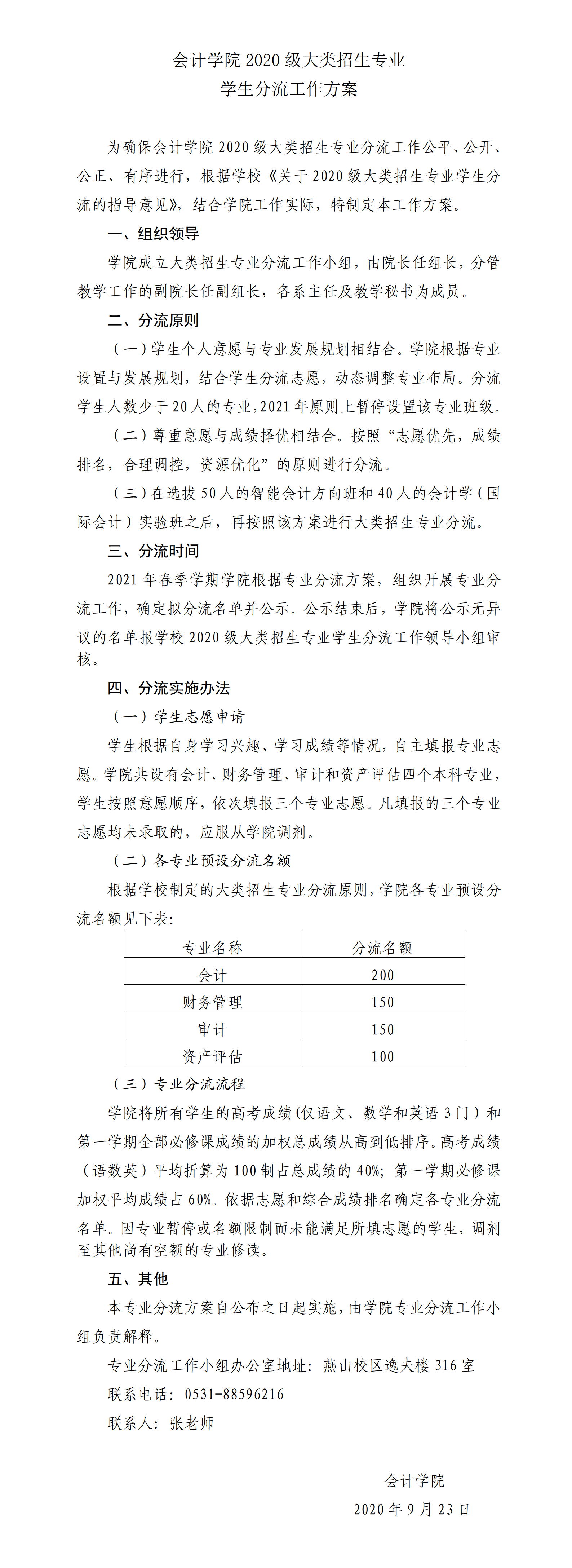 永利yl23411集团2020级大类招生专业----学生分流工作方案