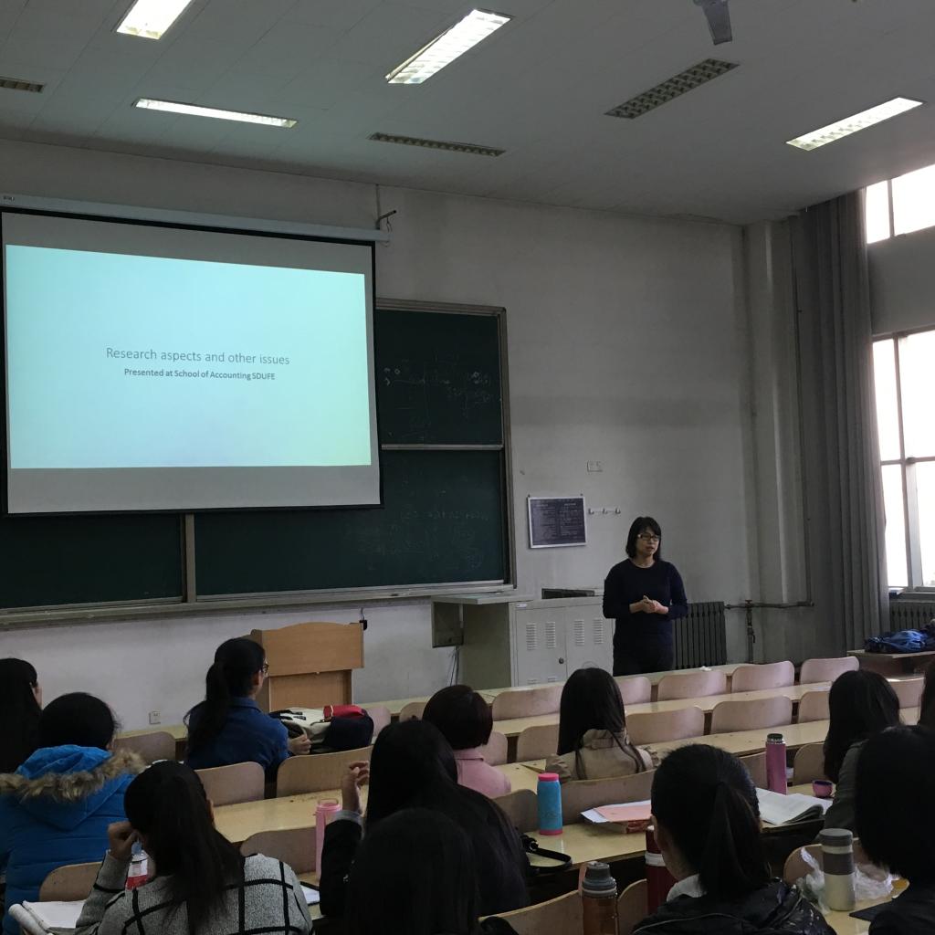 讲座中,刘莉首先讲述了自己从本科到墨尔本大学博士的求学经历和求学心得,为同学们指引了方向并树立了一个良好的榜样。随后,刘博士强调了区分内部财务信息和外部财务信息的重要性,并对如何运用不同的财务信息做了阐述。随后,她又对比了传统会计和现代会计研究问题的不同,体现了会计这门学科的发展和进步。最后,她告诫在座的同学一定要在做学问时明确研究问题的目的,同时立足当下重点关注我国现在存在的问题。