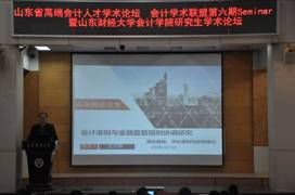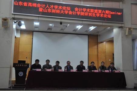 20161210日,由永利yl23411集团、会计学术联盟联合主办的山东省高端会计人才学术论坛、会计学术联盟第六期Seminar暨永利yl23411集团研究生学术论坛在yl23411永利燕山校区成功举办。永利yl23411集团党委书记、副院长张涛教授、常务副院长朱德胜教授、山东省财政厅代表国建出席了开幕式,南开大学古志辉教授、山东财大胡元木教授、西南财大廖林教授、深圳大学顾俊博士、会计学术联盟发起人李高波博士以及来自省内外高校的教授、博士80余人应邀出席了本次学术论坛,永利yl23411集团2016级全体研究生以及部分2015级研究生参加会议。会议收到来自武汉大学、东北财大、南京审计大学、天津财大、广东财大、青岛大学、山东理工大学、齐鲁工业大学、yl23411永利等全国10多所高校30余篇论文,最后经专家审核,挑选出12篇高质量论文进行了汇报。