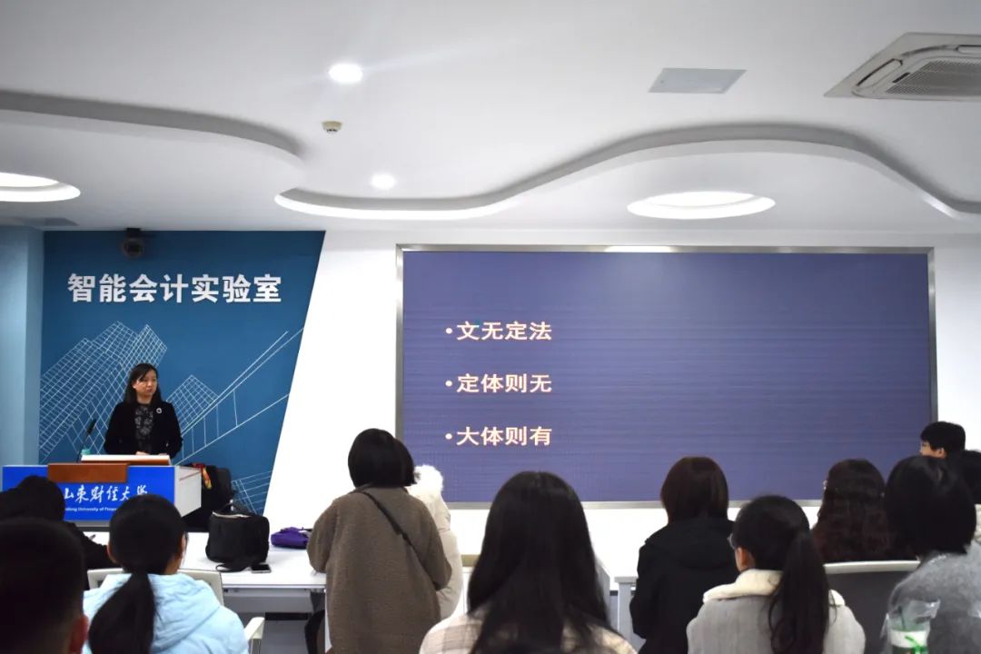 孙蕊主任首先就论文写作目的做了讲述,她认为写论文的目的是推动社会发展。论文写作要讲究百花齐放、百家争鸣,可通过多读多看总结各家之长,找出写论文的规律性方法。就财会实务论文写作,孙主任从四个方面为同学们做了介绍:一是财会实务论文的特点,其区别于学术论文,应兼具实用性和可读性:二是财会实务论文的分类,包括工作经验总结类、案例分析类、调研报告类、问题简答类、综述类等十四种分类,每种分类虽有各有特点但也有共通之处;三是财会实务论文写作的总结,财会实务论文写作要把握新、深、实、活四要素;四是投稿提示,孙主任为同学们介绍了《财务与会计》的投稿要求。
