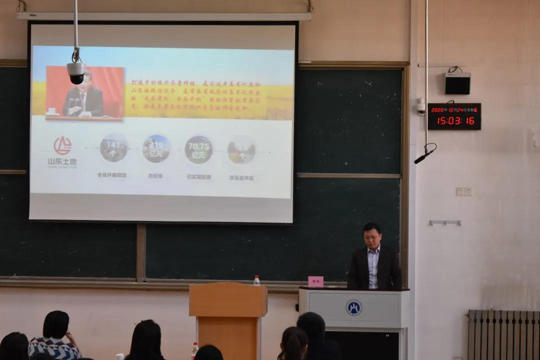 2020年10月24日下午3:00,山东省土地发展集团纪委副书记修玮书记应我院邀请,在逸夫楼Y301作题为《打造乡村振兴齐鲁样板的企业探索和实践》的专题报告。永利yl23411集团MPAcc中心主任、永利yl23411集团副院长朱德胜教授出席并主持本次讲座,永利yl23411集团20级会计专硕聆听了讲座。本次讲座,让师生深刻理解了乡村振兴的重要意义。