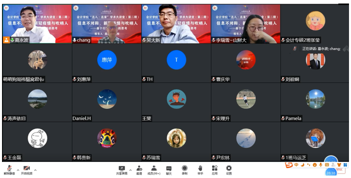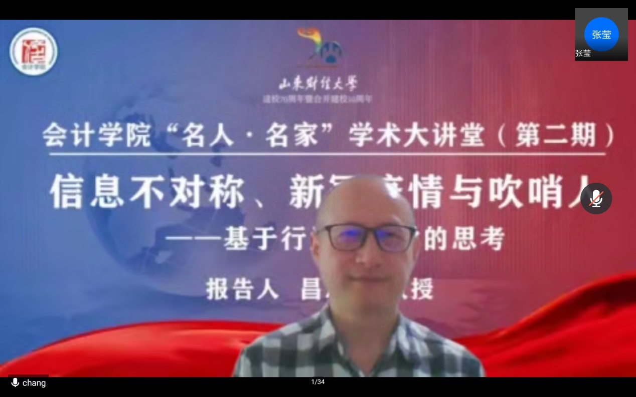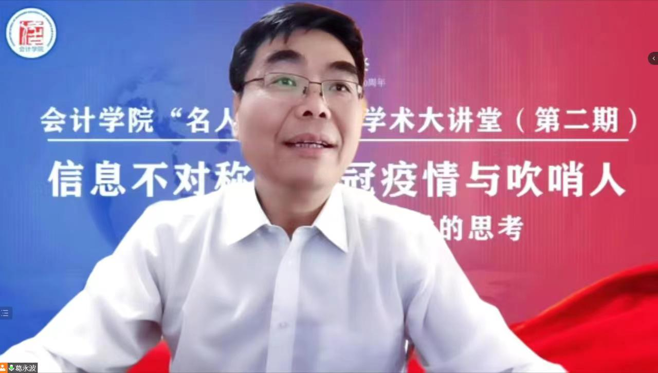 5月19日,永利yl23411集团第二期“名人·名家”学术大讲堂顺利开讲,中央财经大学财经研究院昌忠泽教授做题为“信息不对称、新冠疫情与‘吹哨人’保护制度——基于行为经济学的思考”。本次活动由永利yl23411集团院长葛永波教授主持,学院全体教师和研究生参加了本次讲座。