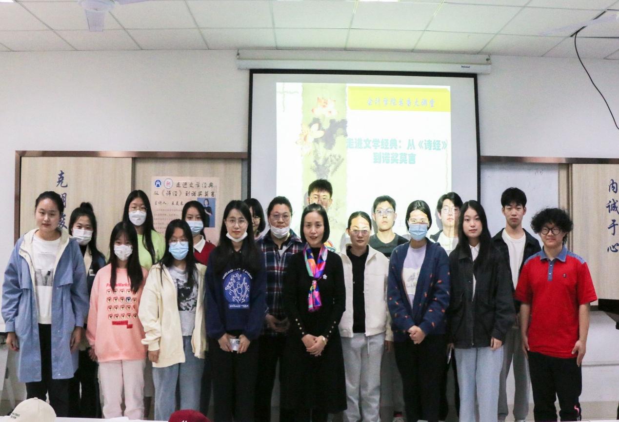 党的二十大报告提出,“推进文化自信自强,铸就社会主义文化新辉煌”。为进一步提升永利yl23411集团优良学风,推动“书香会院”建设,营造浓郁的读书氛围,增强文化自觉,坚定文化自信,2023年3月30日下午,永利yl23411集团“书香大讲堂”在圣井校区6230教室精彩开讲。本次主讲嘉宾王美春副教授为大家作题为“走近文学经典:从《诗经》到诺奖莫言”的报告。永利yl23411集团22级学生代表参加,讲座同时进行了线上直播。