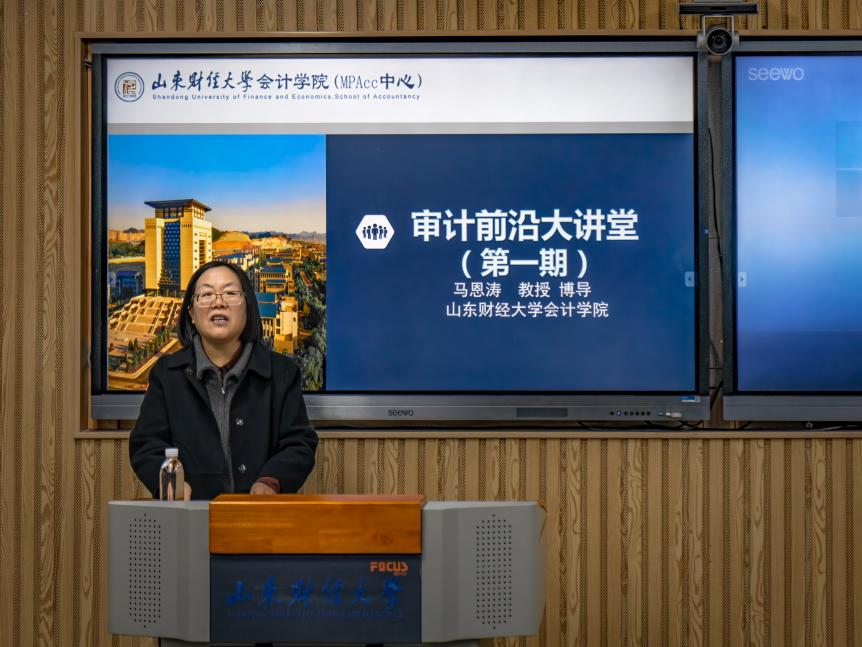 讲座伊始,刘惠萍代表永利yl23411集团向马院长的到来表示热烈欢迎。她表示,审计前沿大讲堂系列活动不仅是一场高水平的学术讲座,更是我校首届审计专业博士研究生的关键课程。当前,数字技术的浪潮正深刻重塑审计的方法论体系,面对新形势、新挑战,我们必须以更开阔的视野、更前沿的思维,深入探讨审计理论创新与实践变革。希望我院师生通过此次讲座,能够近距离接触学术前沿,把握理论动态,提升研究能力。