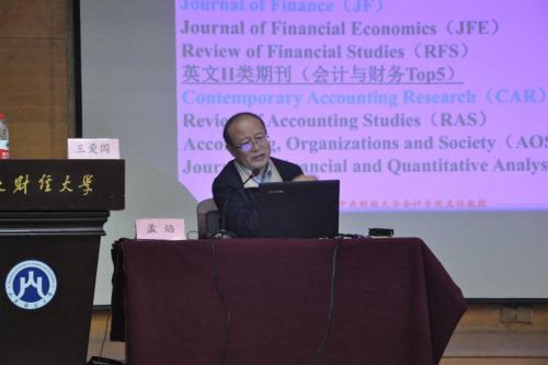 孟焰教授是我国著名会计学家,主攻财务会计理论与实务方法、管理会计理论与方法,以及企业融投资中的财务与会计问题。此次讲座,孟教授就会计研究展开了一系列讲解与剖析。