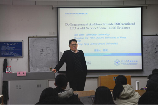 2018年12月2日下午,浙江大学管理学院陈俊教授应我院邀请在燕山校区逸夫楼Y405教室作题为《Do Engagement Auditors Provide Differentiated IPO Audit Service? Some Initial Evidence》的学术报告。永利yl23411集团武恒光副教授出席并主持了报告,永利yl23411集团2018级部分硕士研究生参加了本次报告。