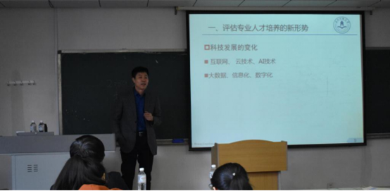 在评估专业人才需求新变化方面,王教授详细分析了考研和就业中,同学们应着重考虑和准备的问题。同时,王教授指出,企业人才需求由会计核算型向管理分析型转变,金融机构中的人才需求由传统业务型向金融分析型转变,中介机构中的人才需求则由传统业务型向分析咨询型转变。这些新变化说明当前人才需求的要素是高素质、复合型和国际化,这就要求同学们不仅要具备专业知识、能力和素质,也要通过通识知识、能力和素质来丰富自己,这也是评估专业人才培养的新要求。此外,王教授也分享了一些课程体系优化的方法和教学过程、教学改革的方法,比如在专业选修课中要涉及到跨专业知识模块、专业技能与实践能力培养等方面,采用小班型研讨式教学和实务专家进课堂等方式。