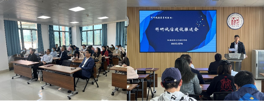 为深入贯彻党的二十大精神,落实党中央、国务院关于科研诚信和学风建设工作有关部署以及教育部、 教育厅各项要求,按照学校科研诚信专项整治活动相关部署,做好“科研诚信宣传教育主题活动月”各项工作,永利yl23411集团于3月9日举办了“科研诚信建设推进会”。院长葛永波、各系主任、各教工党支部书记、专任教师、学生辅导员、研究生、本科生40余人参加,副院长吴大新主持会议。