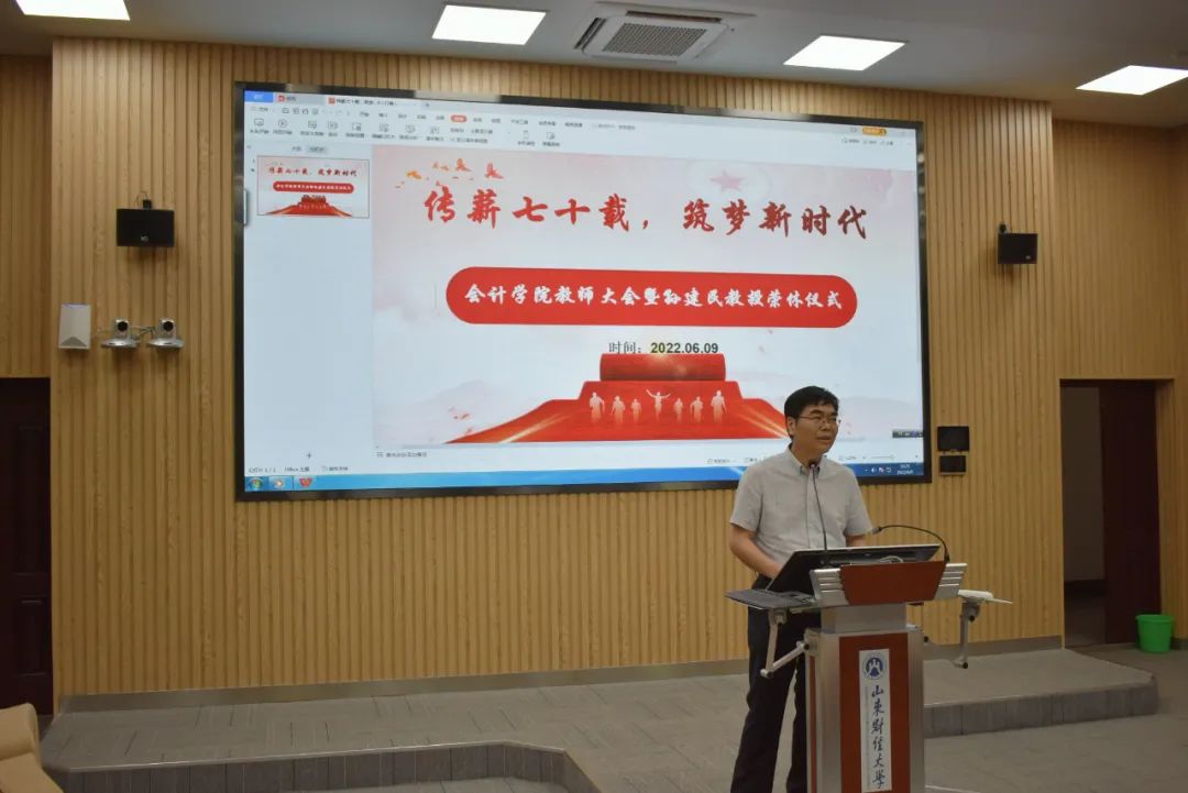 6月9日下午,永利yl23411集团教师大会暨孙建民教授荣休仪式在逸夫楼Y103举行,永利yl23411集团领导班子及全体教师参加,会议由学院党委书记邵文涛主持。