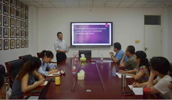 2019年7月16日下午,爱荷华州立大学商学院金融系高磊教授应我院邀请,在燕山校区逸夫楼Y309作题为《Leverage-constrained investors, asset prices and corporate financing decisions》的学术报告。讲座由孙文刚院长主持,永利yl23411集团部分老师以及2018级部分硕士研究生聆听了讲座。高磊教授主要致力于金融市场、资产回报预测、实证公司财务、公司监管、企业文化、文本分析和机器学习等研究,且将于2019年9月份任职于美国证监会。