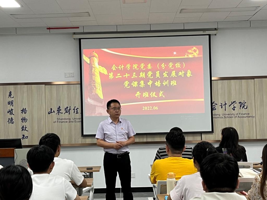 为进一步提高党员发展对象对党的基本理论、基本路线和基本知识的认识,切实提高发展对象的思想认识、政治觉悟、党性修养,引导发展对象从思想上、行动上积极向党组织靠拢,按照校党委组织部部署和学院党委工作安排,永利yl23411集团于2022年6月13日在燕山校区逸夫楼305教室举行永利yl23411集团第二十三期党员发展对象党课集中培训班开班仪式。党委书记邵文涛,党委副书记钟毓卓、郑大伟出席开班仪式,新一批党员发展对象参加,开班仪式由郑大伟主持。