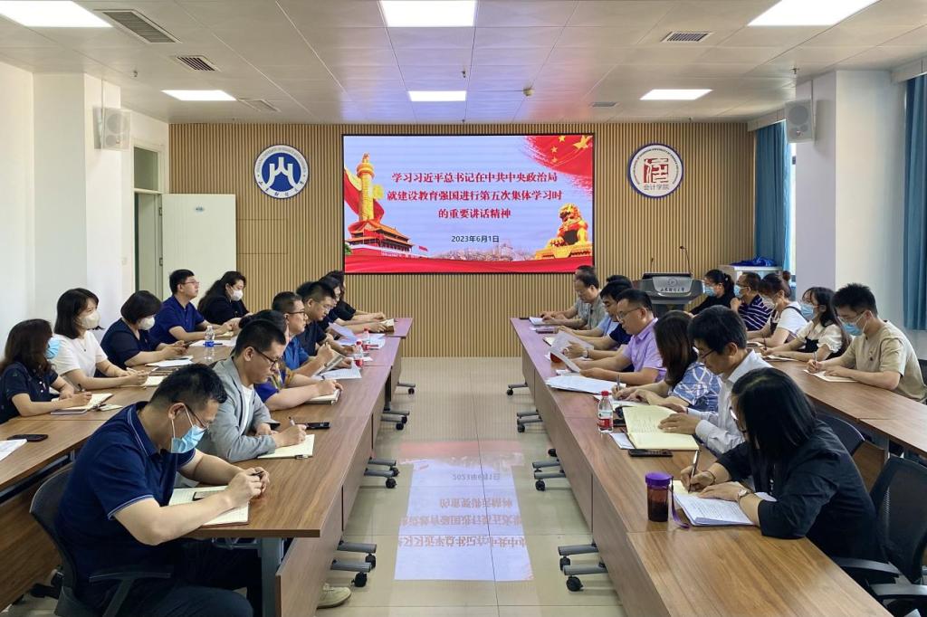 6月1日,永利yl23411集团在逸夫楼410教室传达学习习近平总书记在中共中央政治局第五次集体学习时的重要讲话精神,围绕“教育强国”主题研究部署学习宣传和贯彻落实工作并作交流发言。